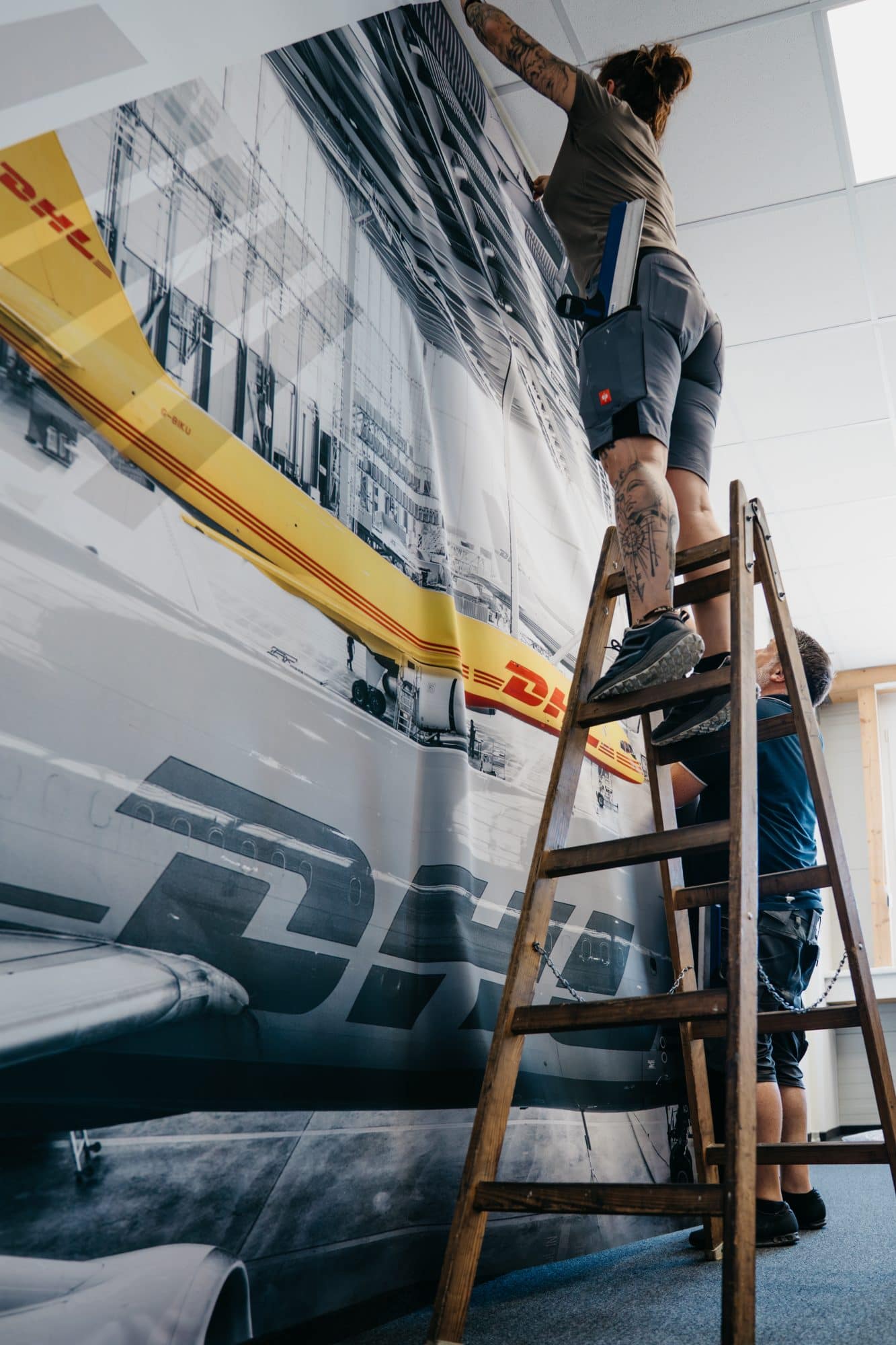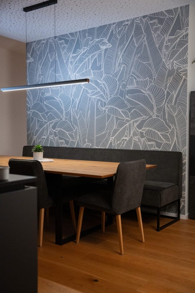 Konventionelle Tapeten bestehen aus mehreren Bahnen. Das führt zu sichtbaren Übergängen, aufklappenden Kanten und komplizierten Motivanschlüssen – gerade bei großen, bildstarken Motiven. Gleichzeitig steigen die Anforderungen an Langlebigkeit, Pflegeleichtigkeit und Nachhaltigkeit im Objektbereich.